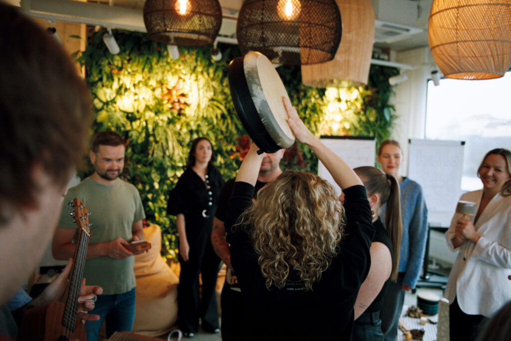 Foto: Robert Parelo. Muusikainstrumendid aitavad meeskonna supervisioonis kogeda looval moel, kuidas igal häälel on süsteemis oma roll ja mõju tervikule.