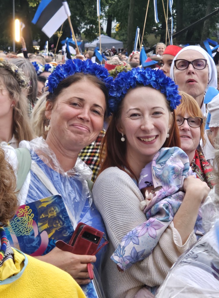 Laulupeo eel, ilmateadet nähes, tundus osalemine keerulisem, kui oleksin seda arvanud. Rongkäigu päeval asusin juba vara beebi ja vankriga kodust teele. Majast lahkudes tuli vihma nagu oavarrest ja sisimas mõtlesin “millesse ma end nüüd mässinud olen?”. Vihmasabina saatel aga magas pisike õndsat und ning minu ja paljude üllatuseks osalesin terve teekonna rongkäigul koos beebiga. Alguses vankris, siis minu lähedal kandekotis. Ka ühised laulud said sel päeval ilusti lauldud, beebi turvaliselt vanavanemate hoole all laulukaare juures. Järgmiseks päevaks lubas ilmateade veidi vähem vihma ja tõtt-öelda olin eelneva päeva edust nii jõustatud, et kahtlusi enam polnud. Õnnestus osaleda nii naiskooride setis kui lõpus ühendkoorides. Minu jaoks kogu kogemuse kõige erilisemaks hetkeks jäi lõpuühendkooride esinemine, kuhu võtsin oma pisikese kaasa. Oli kirjeldamatu tunne olla seal üheskoos nii paljude lauljatega, lauldes meile kõigile tuntud ja armsaks saanud laule ning samal ajal luues ühist kogemust oma pisikese beebiga, kes näis olukorda nautivat ning viimaste laulude ajal suikus rahulikku unne. Õhtupimedas koju jõudes olin täis vägevaid emotsioone, mis kandsid mind veel järgnevadki päevad-nädalad. See kõik poleks aga saanud realiseeruda, kui poleks olnud minu tugivõrgustikku ja toetavaid koorikaaslasi ja dirigente! Julgustan siinkohal ka teisi võimalusel pisikeste kõrvalt koorilauluga jätkama või siis lihtsalt oma laste ees laulma. Las rõõm ühisest musitseerimisest ja laulmisest saa neile omaseks hällist alates.