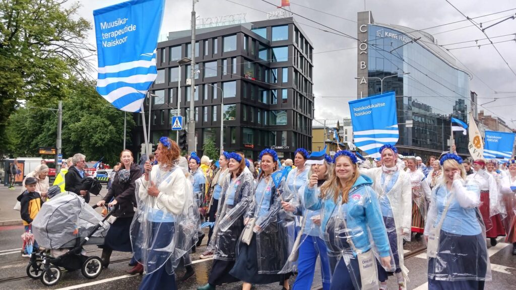 Kui meie ühingu aktiivsed koorilauluhuvilised otsustasid aasta tagasi üheskoos kokku panna naiskoori, et minna laulupeole, olin mina aktiivsest tööelust juba mõnda aega eemal olnud ning ootasin oma teist last. Koduse emana oli minu hobidering pea et kokku kuivanud ning süda ihkas väga midagi endale. Olin ennegi koorides laulnud, seda nii mudilas-, laste-, noorte- kui segakooris, kuid naiskoorikogemus mul siiani puudus. Suur koorilauluhuvi realiseerus isegi bakalaureusetööna, milles otsisin seoseid koorilaulmise ja heaolu vahel. “Jah” öeldes polnud ma muidugi kindel, kas vastsündinu kõrvalt üldse ettelaulmistele ja laulupeole jõuan, kuid nälg oli suur. Nõnda ma siis liitusingi Muusikaterapeutide Naiskooriga. Enne lapse sündi olin eeskujulik kohalkäija. Pikkadest proovidest hoolimata olin väga motiveeritud. Oma tollal veel sündimata beebiga koos käia oli eriline tunne, kuna lauldud repertuaar sai teatud mõttes “meie omaks”. Osa sai ka kodus olev väikelaps, kes kuulis mind sageli laule harjutamas ja hakkas minuga koos laulma. Koorilaulurõõmu said peale minu laste kogeda veel teistegi koorikaaslaste võsukesed. Viskasime isegi omakeskis nalja, et peaksime looma oma mudilaskoori. Siiski polnud peale teise lapse sündi kohalkäimine enam nii lihtne. Pidin mõnest proovist ning ka esimesest ettelaulmisest puuduma. Sees pakitses teatav hirm ja kahtlused. Otsustasin, et lähtun beebist ja võtan päev korraga. Õnneks õnnistati mind rahuliku beebiga, kes edaspidi kooriproovides ainult mõnusasti magas. Ka ettelaulmisel sain osaletud oma ema toel, kes sel ajal pisikest kõrvalruumis vaatas.